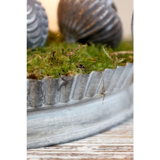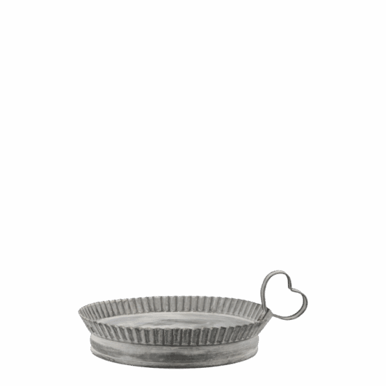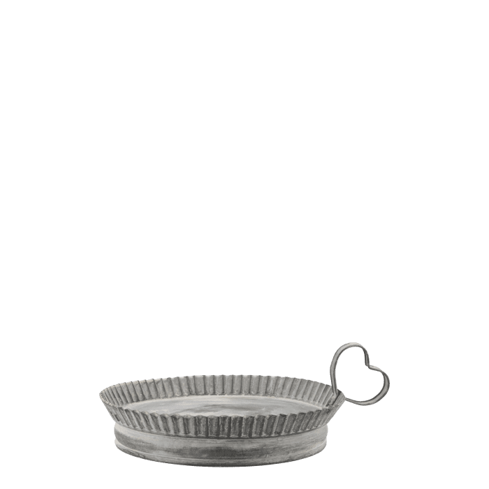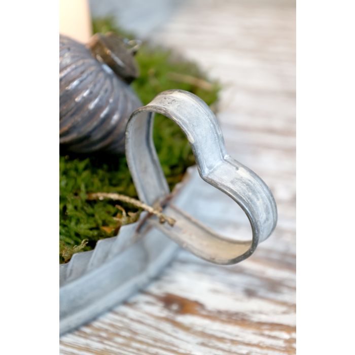 Giv dit hjem en rustik og hyggelig detalje med dette smukke fad i antik zink fra Chic Antique. Det bølgede kantdesign og de fine hjertehåndtag gør fadet til en charmerende dekoration, ideel til julelys, kogler eller små grantræer.