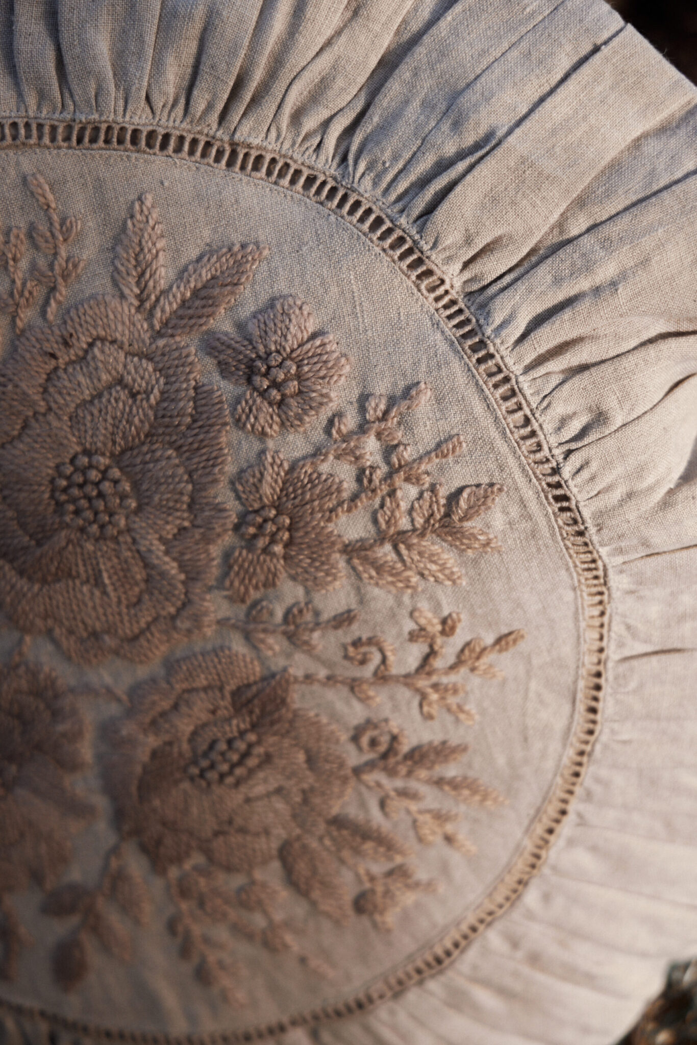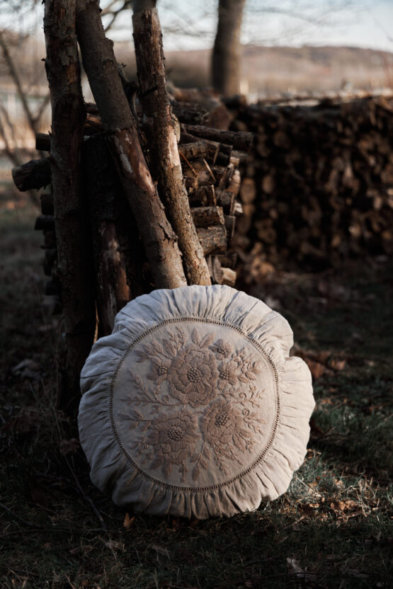 Floret-broderede pudebetræk er lavet i rent blødt hør fra Femme Facon.