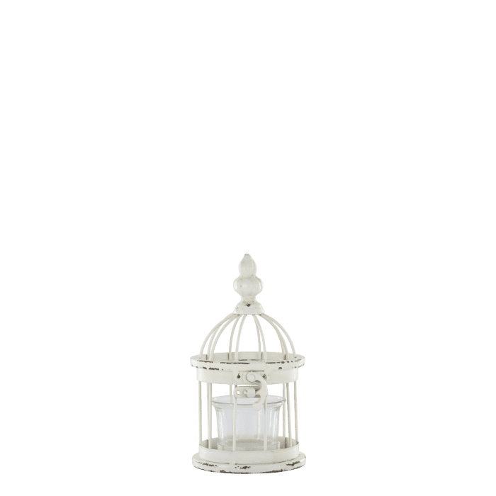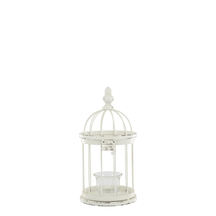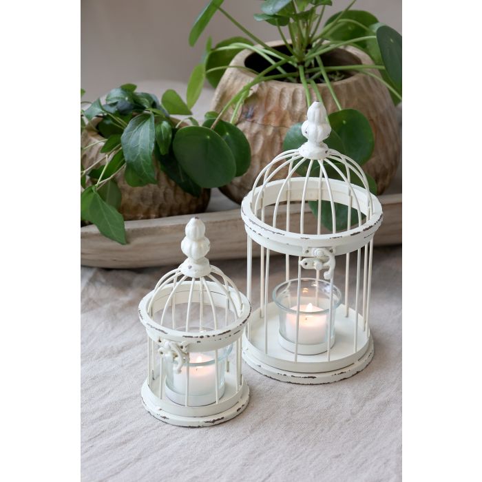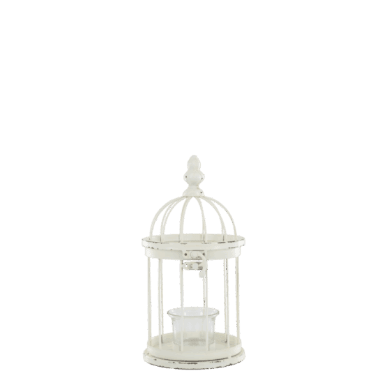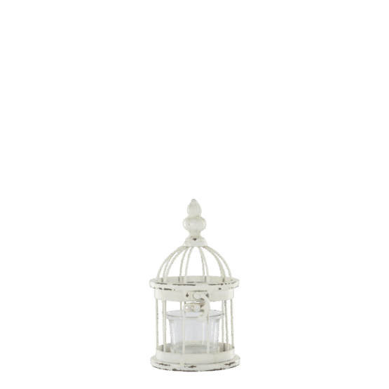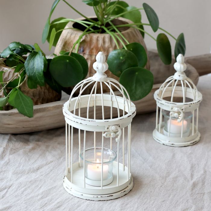 Smukt fuglebur til fyrfadslys i antique creme fra Chic Antique, der kombinerer romantisk fransk landstil med tidløs elegance.