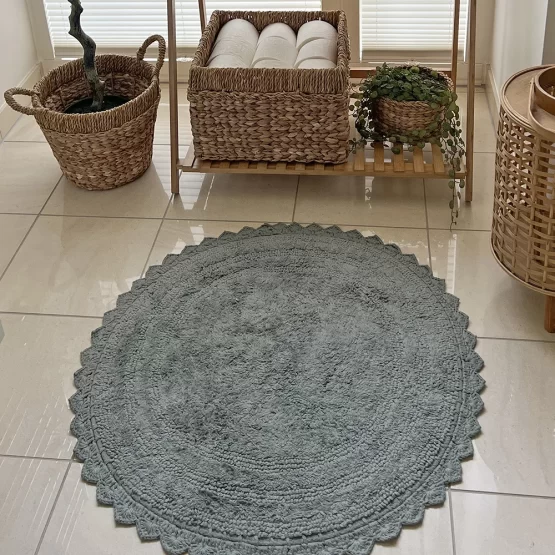 Flot, behageligt og blødt bomulds gulvtæppe i grønt fra La Vida.