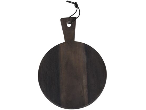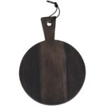 Lækkert Laon tapasbræt i akacietræ i farven kul med lædersnor, så det kan hænge fra Chic Antique.