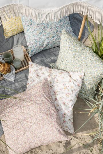 Pudebetræk – creme m/rosa, grønne, blå og hvide blomster
