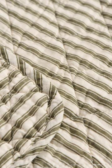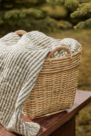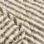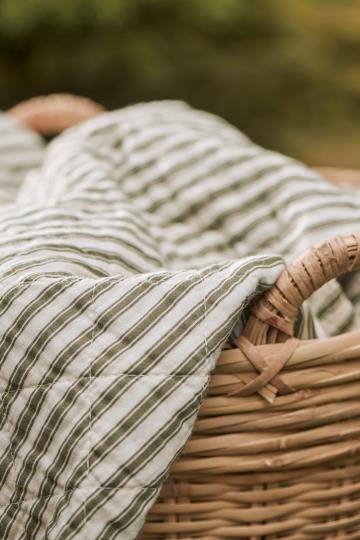 Denne vidunderlige quilt fra Ib Laursen bringer en rolig og indbydende stemning ind i hjemmet. Den bløde sandfarve kombineret med fine olivengrønne striber skaber et naturligt og harmonisk udtryk, der indbyder til hygge og afslapning. Quilten er lavet af 100% bomuld i høj kvalitet og er både blød, holdbar og utrolig behagelig at bruge. Perfekt til at svøbe sig i på kølige aftener eller som en smuk detalje i sofaen eller soveværelset – et stykke tekstil med både charme og karakter.”