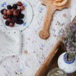 Smuk dug med blomsterprint fra Femme Facon. Det smukke blomstrende print er designet med inspiration fra gamle svenske tapeter og trykt på blødt økologisk bomuld....