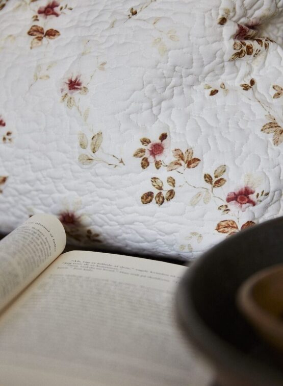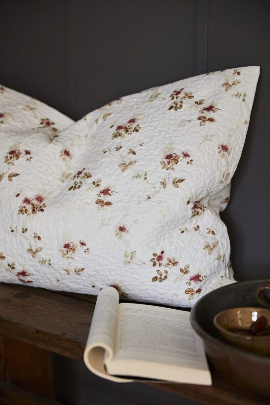 Smukt quiltet pudebetræk med blomsterprint fra Femme Facon.
