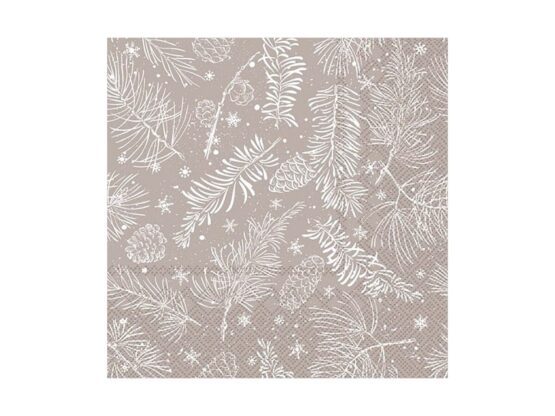 Smykke servietter m. snefnug i farven oliven fra Chic Antique. Mål. 33 x 33 cm – 3 lag 20 stk pr pakke
